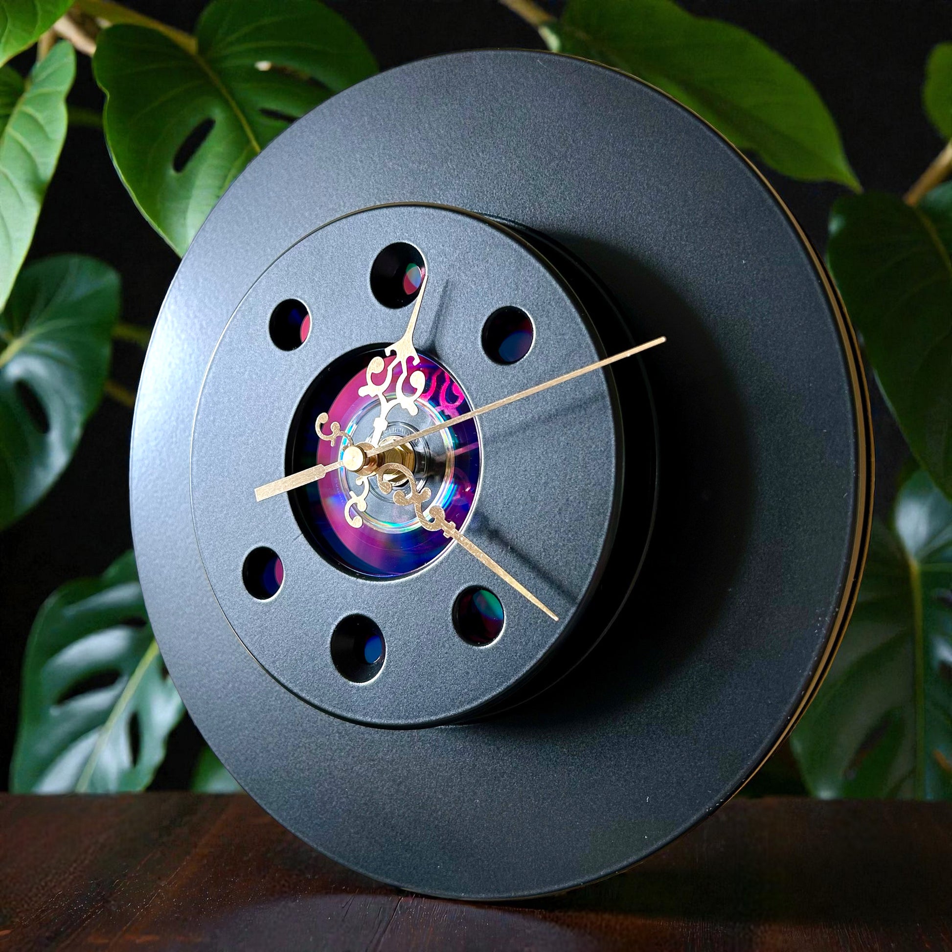 This unique clock is crafted from a new brake disc, combining the industrial character of steel with a designer form. Ready to grace your wall.